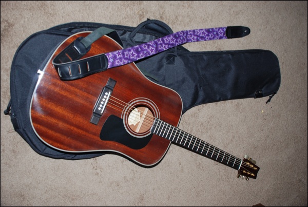 We have three guitars at the moment… long story, I’ll explain it at some point. 2 fiddles and now, 2 banjos as well. And well, no one really plays the guitar in our household… I use one just for songwriting, and I have a nice Martin clone that I use.
