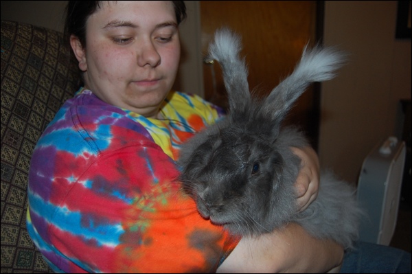 Ozzy likes it as well. Right now they just visit, but I’m trying to figure out how to make them a nice cage for inside that is super easy to clean and keep clean… got a few ideas and such. Since they are fiber rabbits and we would love to keep them clean and tidy, so it doesn’t mat their hair up and such, we’re thinking towards that in mind. And they are BIG bunnies! Shesh… bigger than our cats!